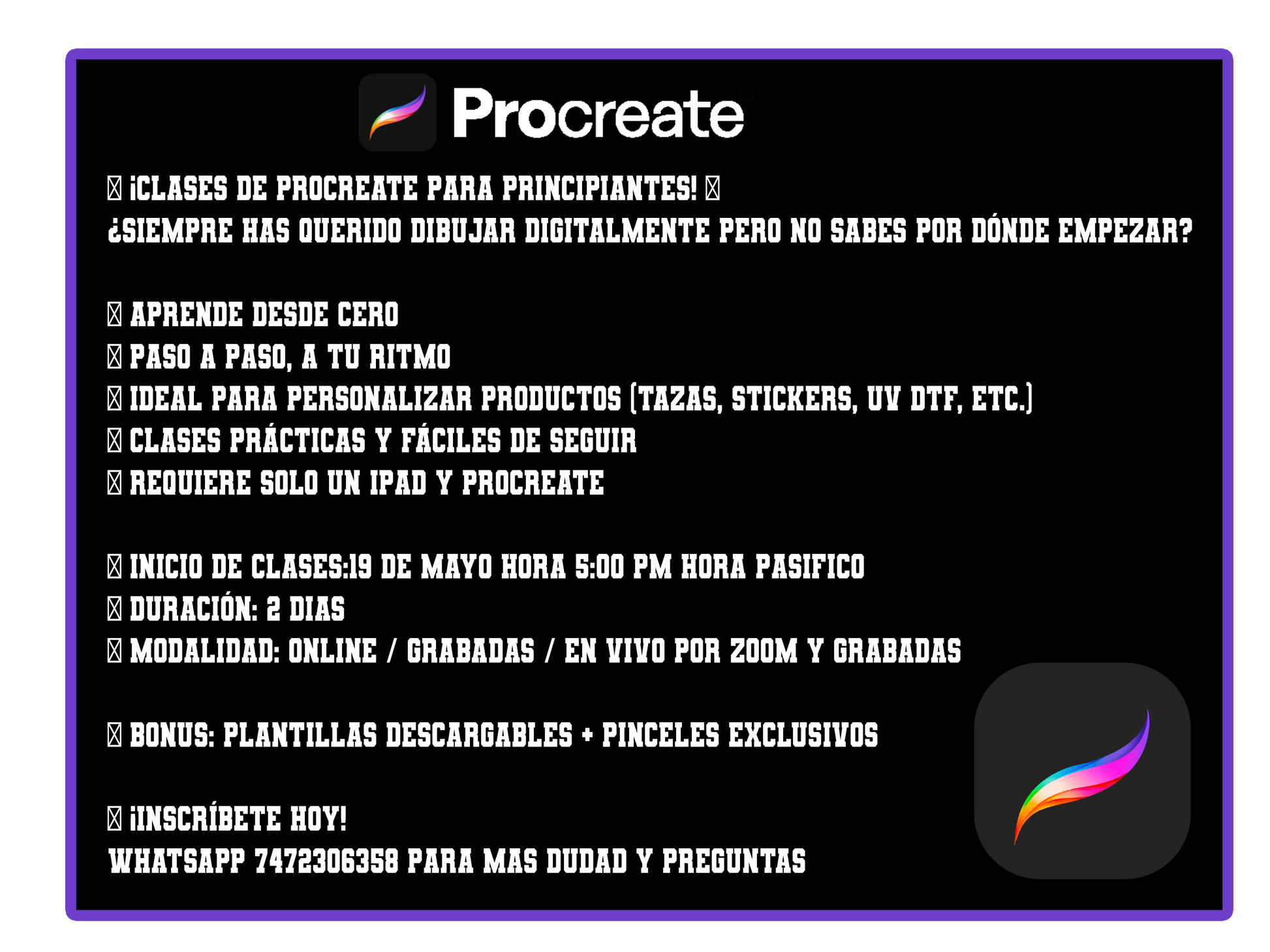 🖌️ ¡CLASES DE PROCREATE PARA PRINCIPIANTES! 🎨 PROXIMA CLASE 23 DE JUNIO