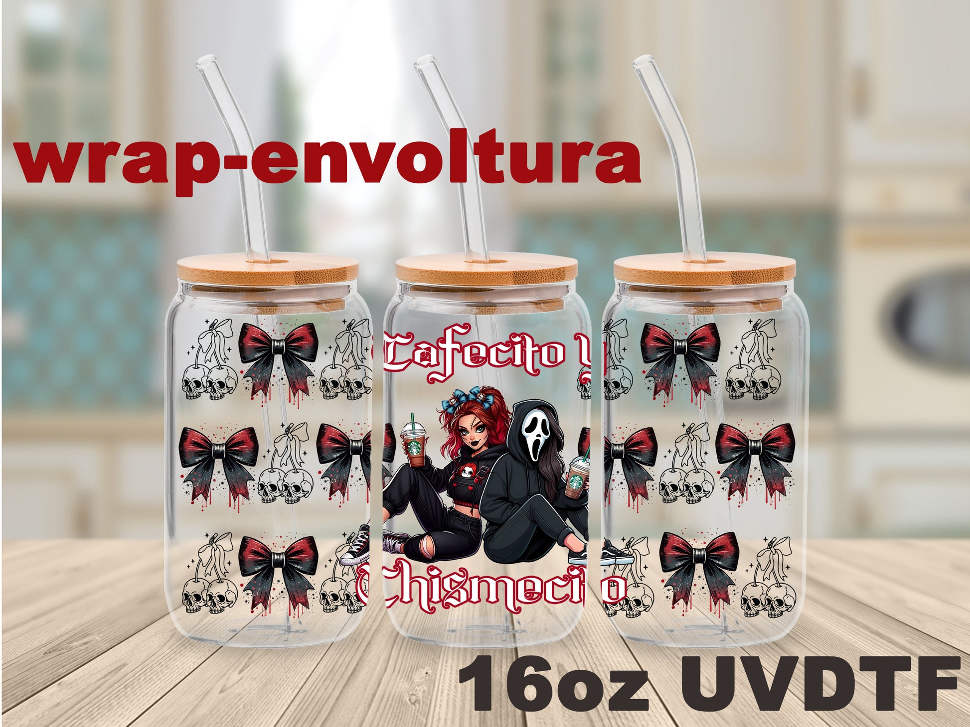 Café y Chismesito Horror girl uvdtf wrap/envoltura