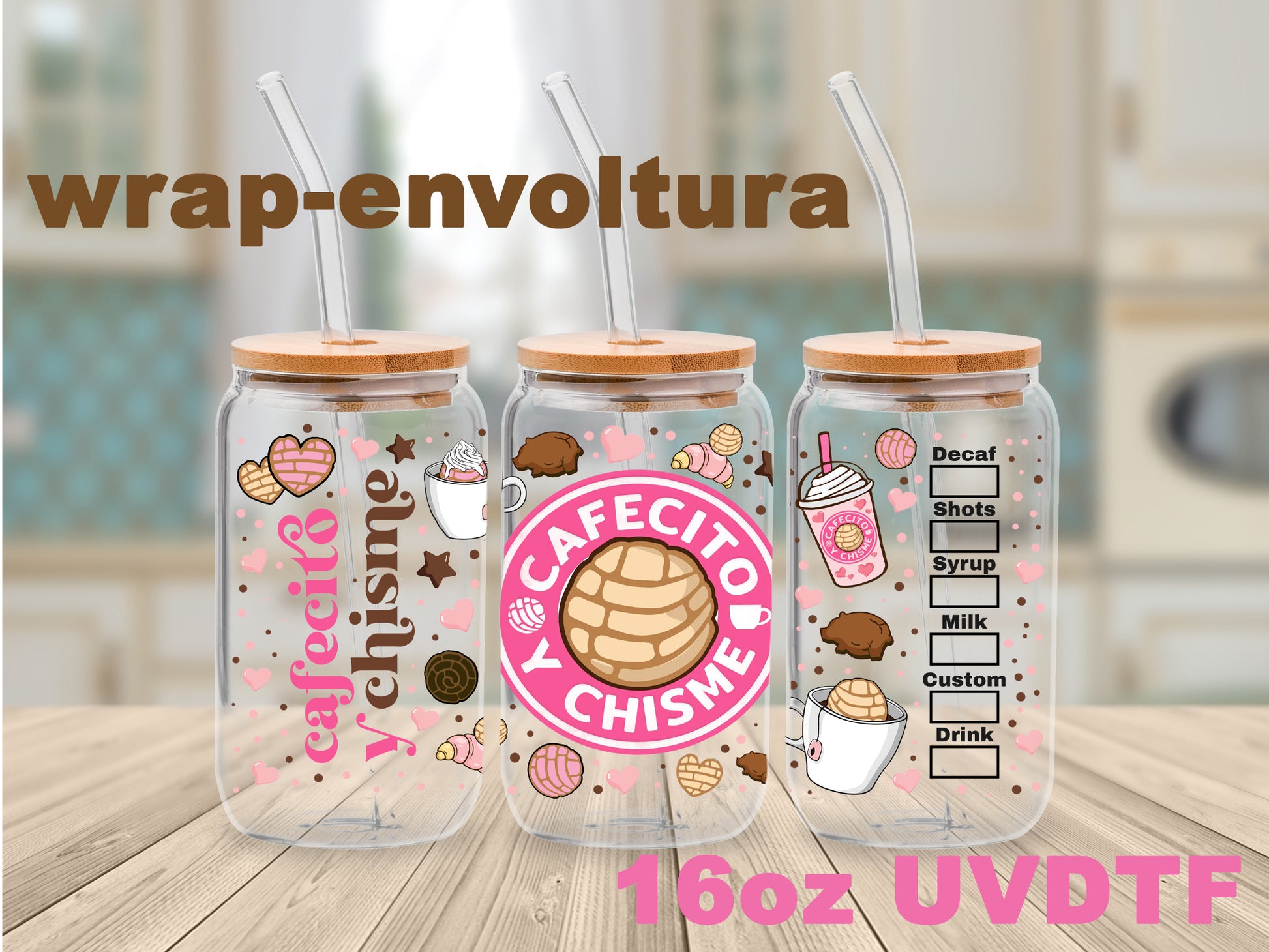 Cafecito y Chisme Rosa uvdtf wrap/envoltura
