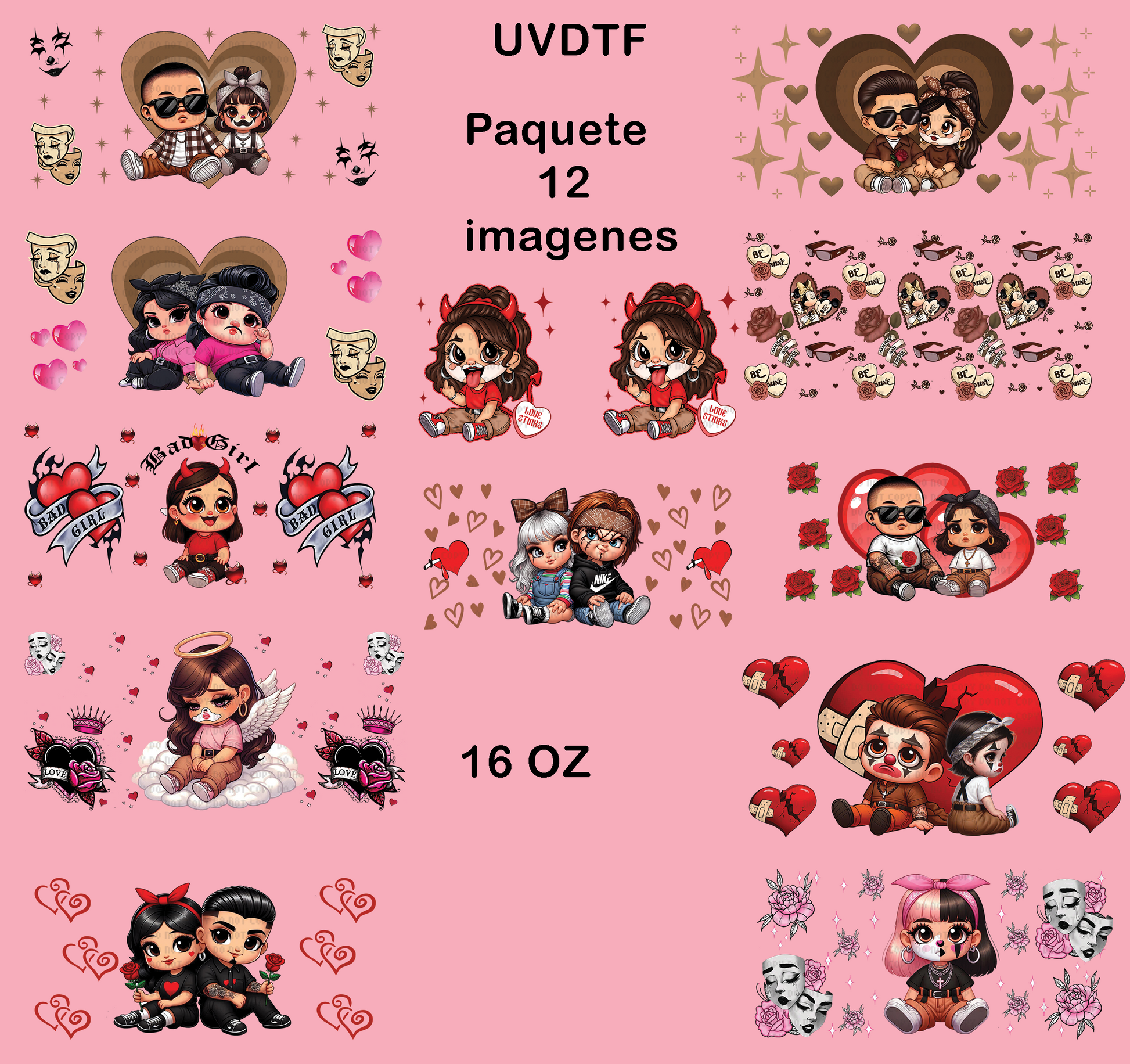 12 imagenes paquete uvdtf para vaso de 16 oz