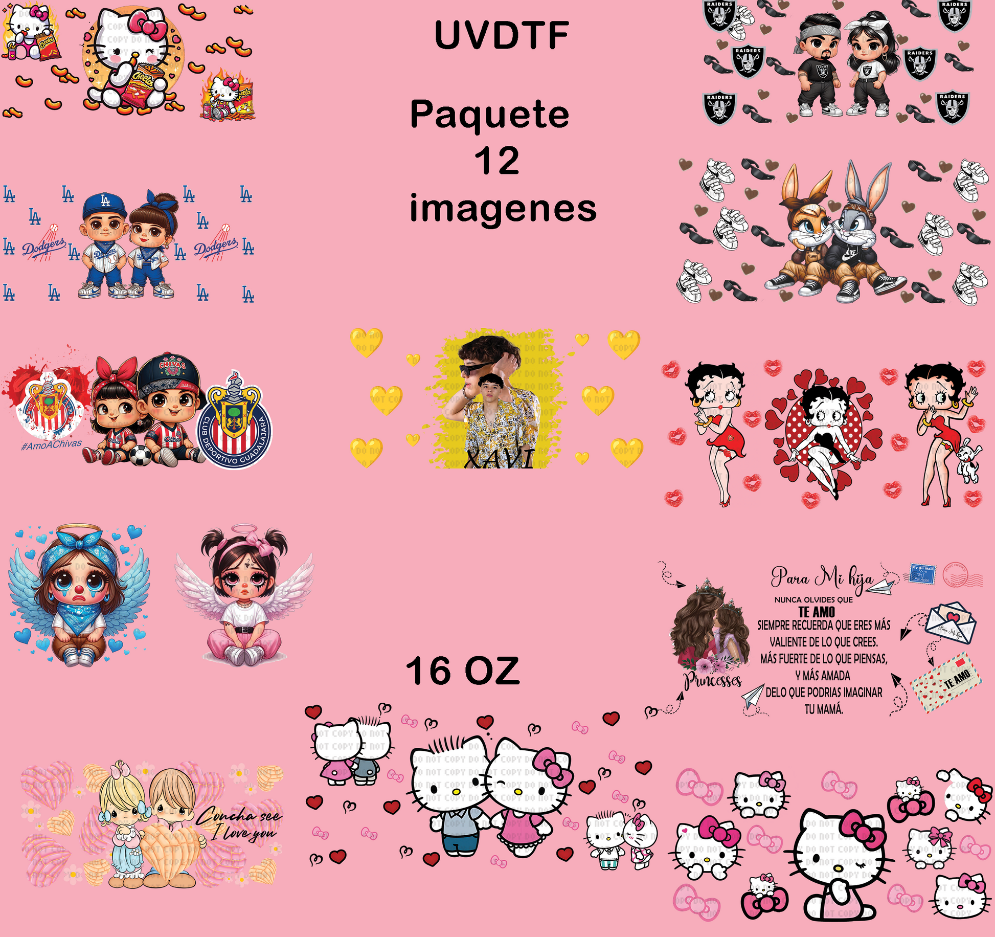 paquete de 12 imagenes uvdtf para 16 oz