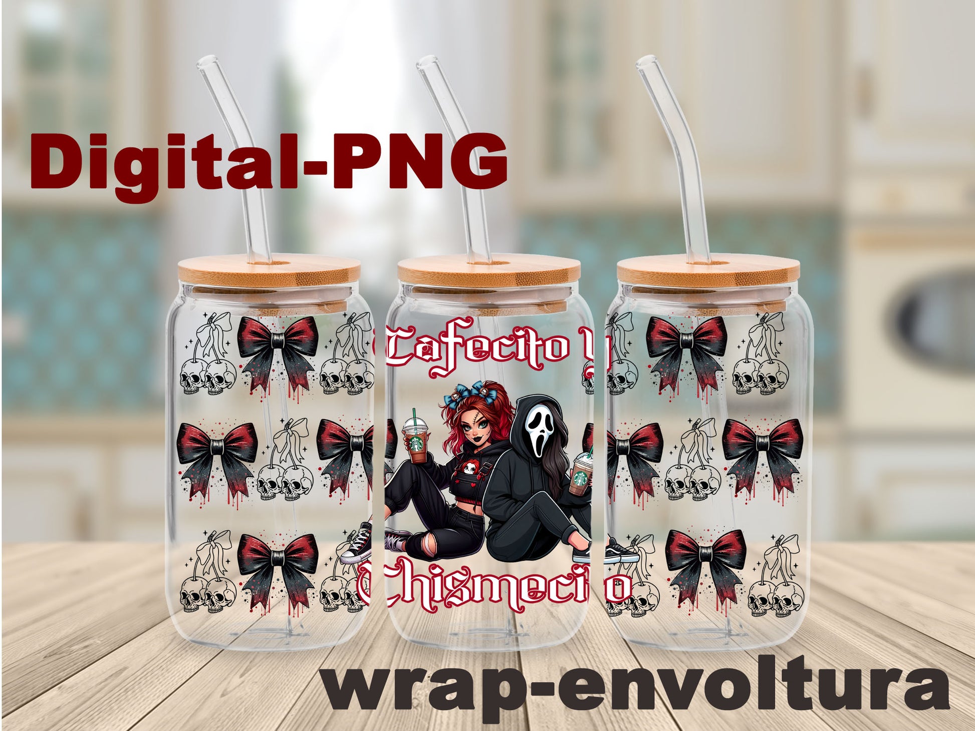 Café y Chismesito Horror girl Digital-PNG wrap/envoltura